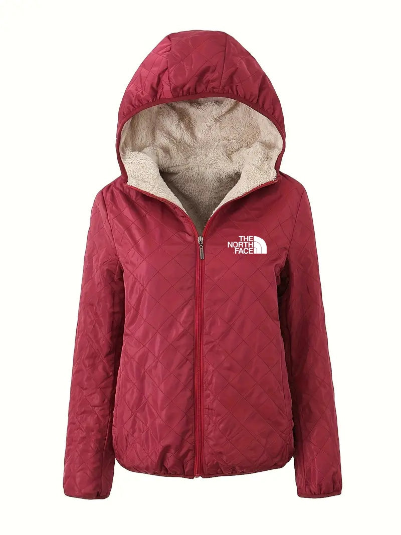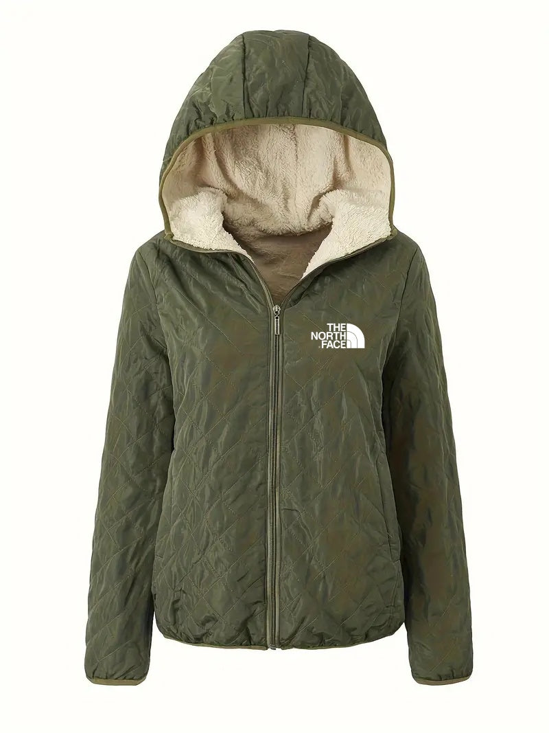 2024 THE NORTH FACE-Front Zipper Long Sleeve Hooded Jacket Casual Solid Color Cotton Clothes Autumn Winter Women’s Clothing