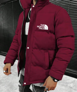 SKU: 8859467350152-2024-the-nothtrth-face-solid-color-suede-padded-jacket-stand-up-collar-thick-jacket-with-zipper-and-button-details-winter-fashion