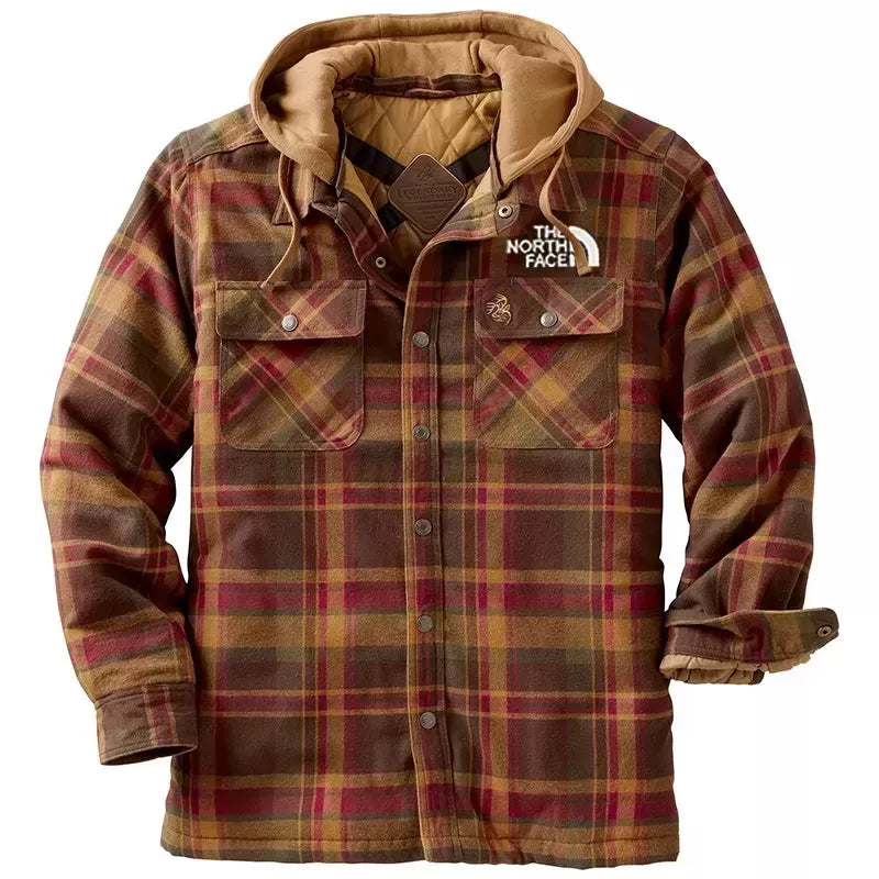 Mens Casual Autumn And Winter Thickened Plaid Long Sleeve Coat