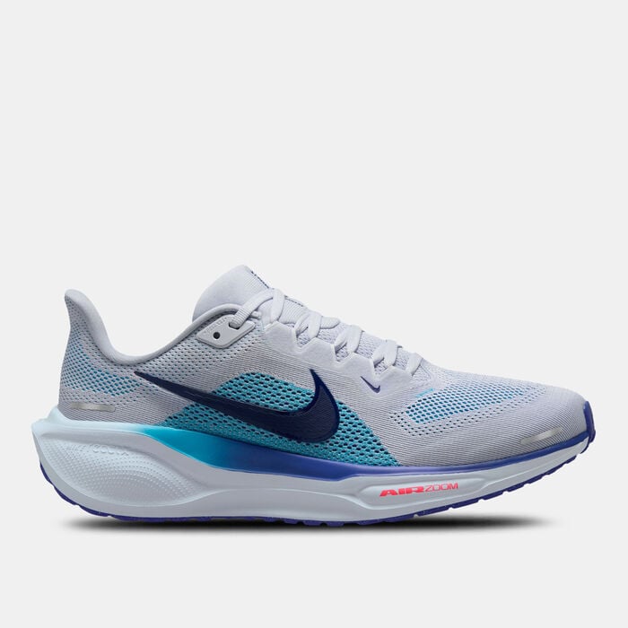 - Nike Swoosh logo on the men’s Pegasus 41 road running shoes offers a statement look
