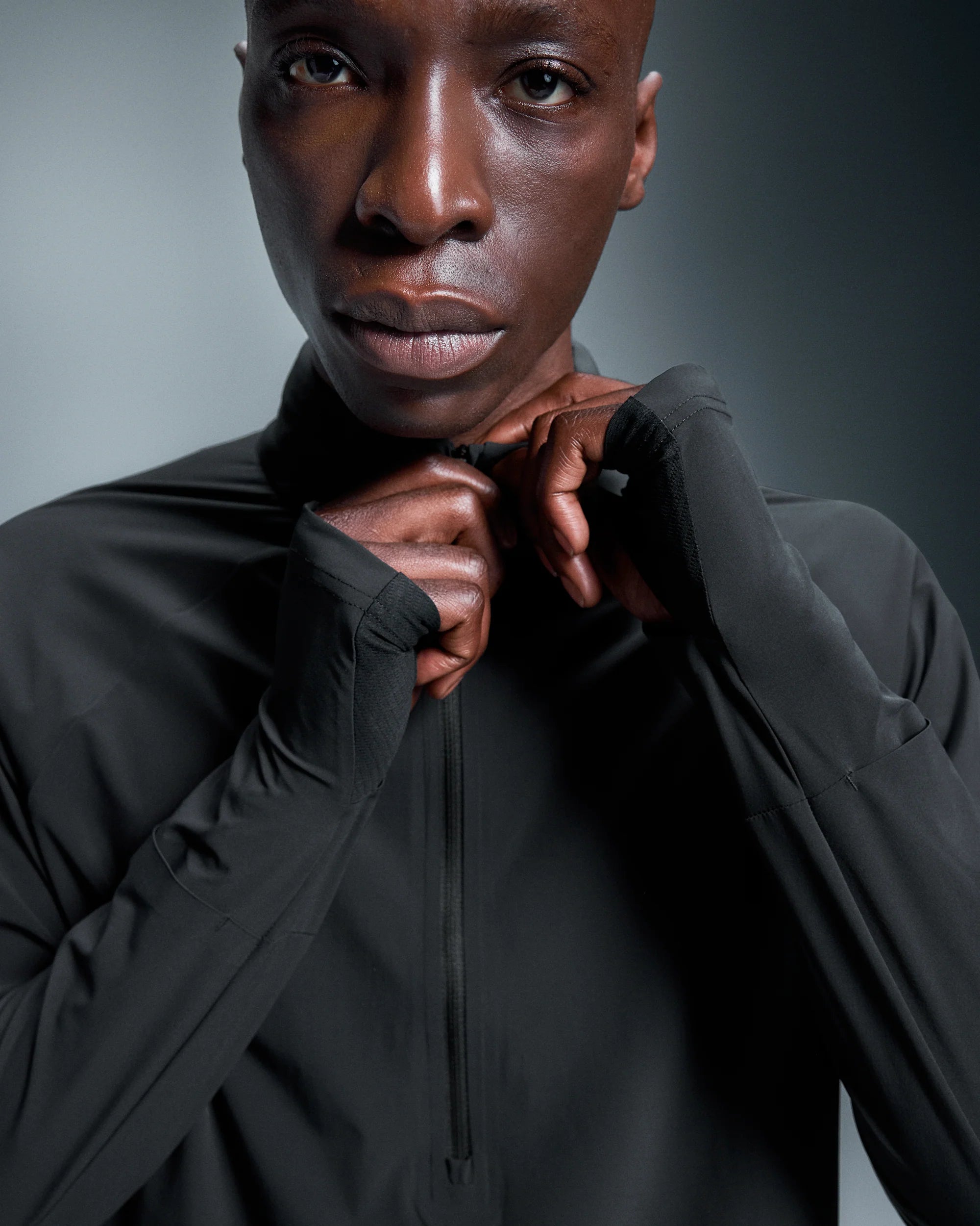 Thumb holes keep sleeves in place on cold weather runs