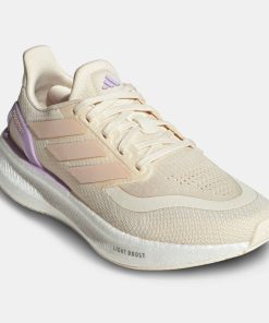 - adidas logo on the women’s Pureboost 5 running shoes offers a statement look